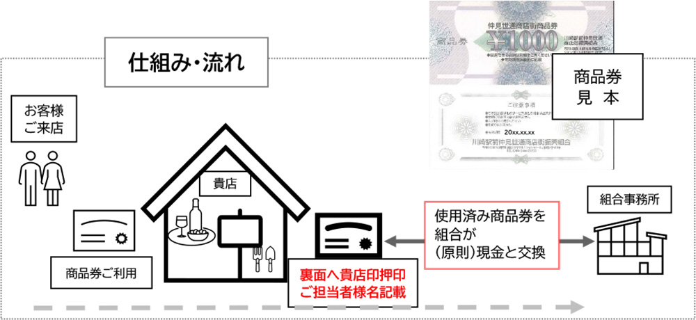 つきましては、以下の仕組みをご理解いただきましてお客様が持参される本商品券を貴店でもご利用できますようお取り計らいをお願いするものです。