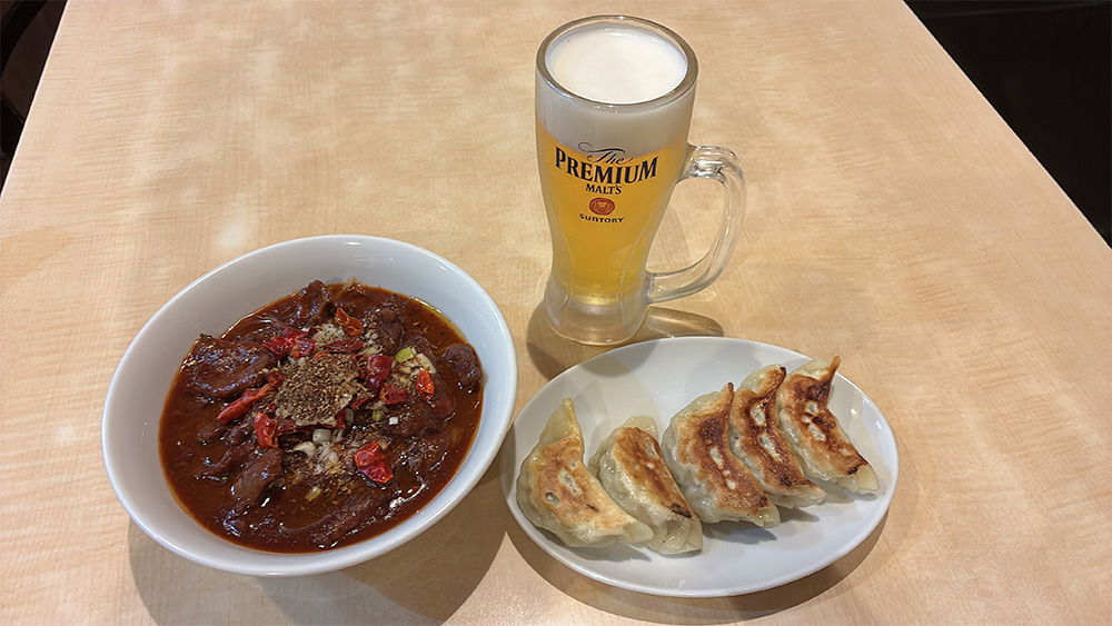 生ビール+四川風牛肉の激辛旨煮+焼肉餃子セット